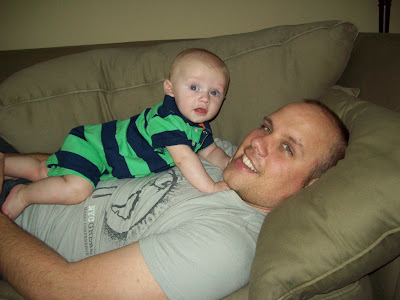 This picture sums up many of our evenings. All three of my boys are lounging on the living room floor. Casey was "talking" to Gavin who decided it was more exciting to roll over and stare at Louie, who in turn didn't care at all about either Casey or Gavin :)